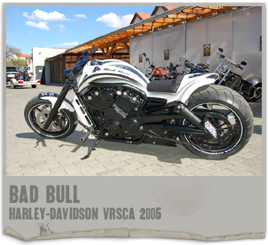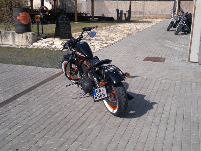 Konstrukce, realizace, kompletace, Výfuky Screami´n Eagle, Sání Roland Sands, přemapování řídící jednotky, lakování kol, odpružené sedlo Harley-Davidson, širší řidítka, opletená lanka a hadice,  rukojeti Harley-Davidson