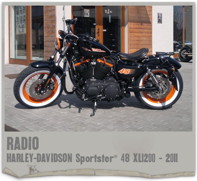 „48“ RADIO : Old school v moderním pojetí. Motocykl vychází z Harley-Davidson Sportster 48 ze kterého byl zachován původní vzhled a byly podtrženy retro prvky jako třeba pneumatiky s bílým bokem odpružené sedlo atd. Konstrukce a geometrie je zachována podle továrního motocyklu. Na motocyklu jsou použity díly a doplňky výhradně od Harley-Davidson. Tento motocykl evokuje 50´ léta s použitím moderní technologie.