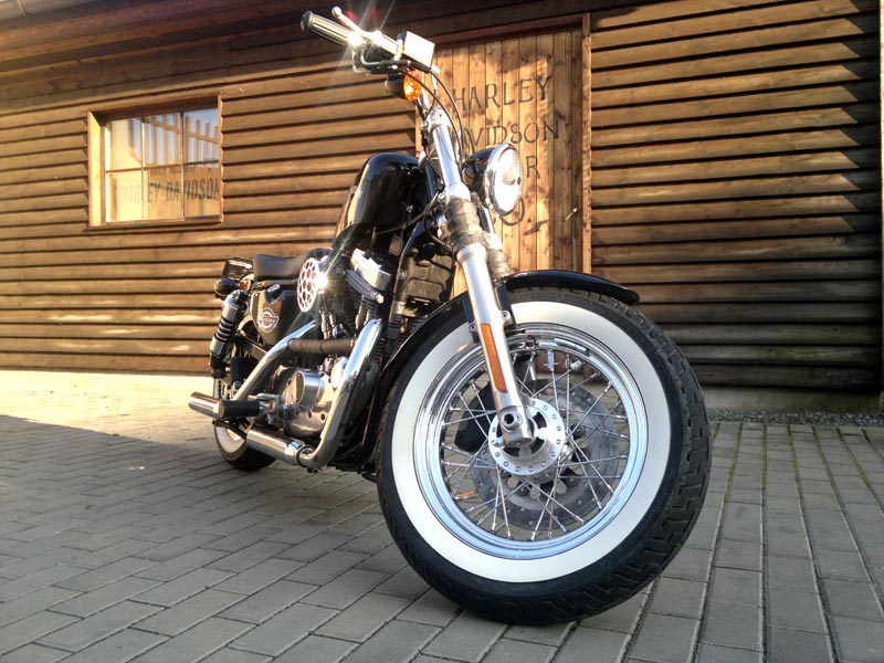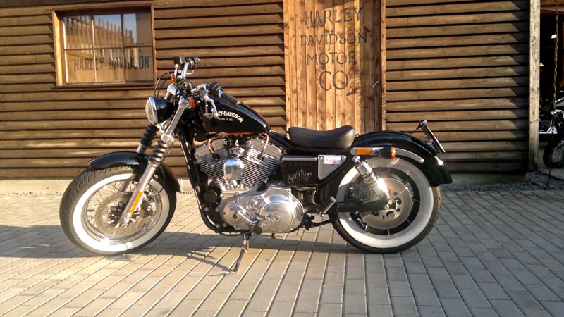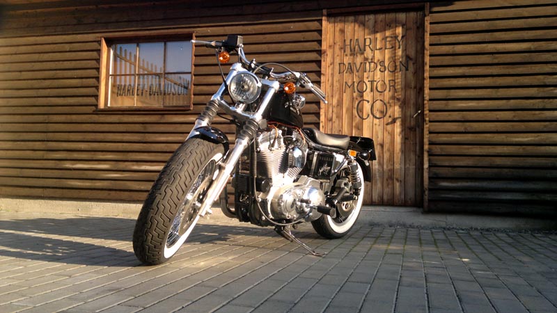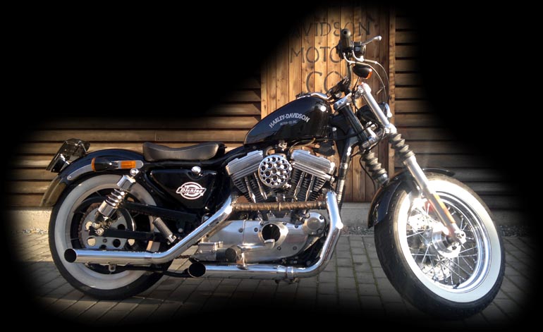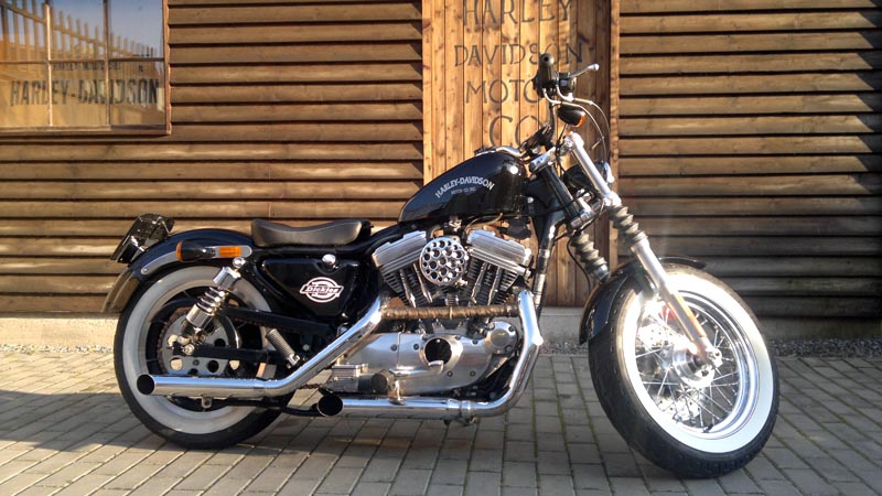 Sportster z roku 1989 což byla poslední řada s 4 stupňovou převodovkou. Motocykl byl původně ve velmi použitém stavu a víceméně neupraven. Majitelem Sportyho je Dan ( Service manager ) který si motocykl i sám upravil do současné podoby. Rám a motor po technické stránce zůstali původní. Motor byl pouze opískován a byl nově nastříkán šedivou motorovou barvou. Rám dostal nižší zadní tlumiče od společnosti progressive suspension a motocykl se tak více přiblížil vozovce. Výfuky jsou Harley-Davidson s velmi příjemným klasickým zvukem a dodržují originál Harley-Davidson tvary. Přední část motocyklu byla ale kompletně od základu změněna. Brýle jsou rozšířené a vidlice zkrácené. To vše proto aby bylo možné motocykl osadit širokým předním kolem ve stylu současného modelu „48“. Řidítka jsou snížená a jsou zbavena tachometrů a přístrojů. Jediné kontrolky jsou zabudované přímo do předního světlometu a hlídají neutrál a olejový tlak. Lak motocyklu byl předělán podle originálu a je obohacen o decentní airbrush od Olafa Pugnera. Zadní světlomet zmizel a byl nahrazen sdruženými blikači.